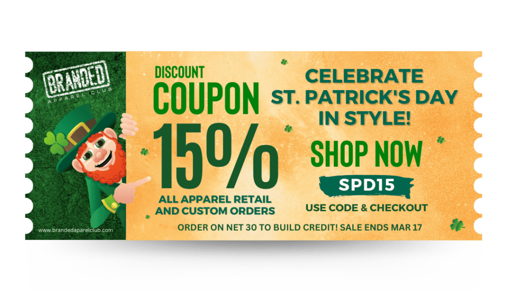 Enjoy an exclusive 15% off on all our apparel with promo code SPD15. Whether you’re shopping for yourself or looking for the perfect gift, now is the perfect time to shamrock your style with Branded Apparel Club.
